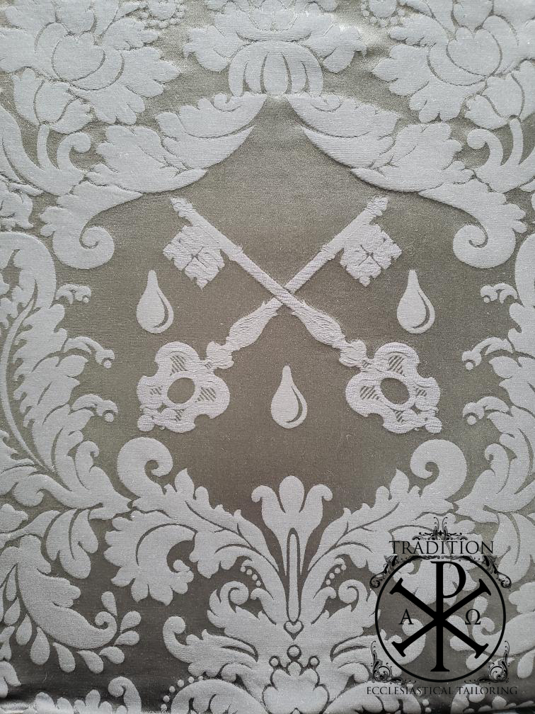 French Roman Chasuble with F.S.S.P. Coat of Arms Silk Damask